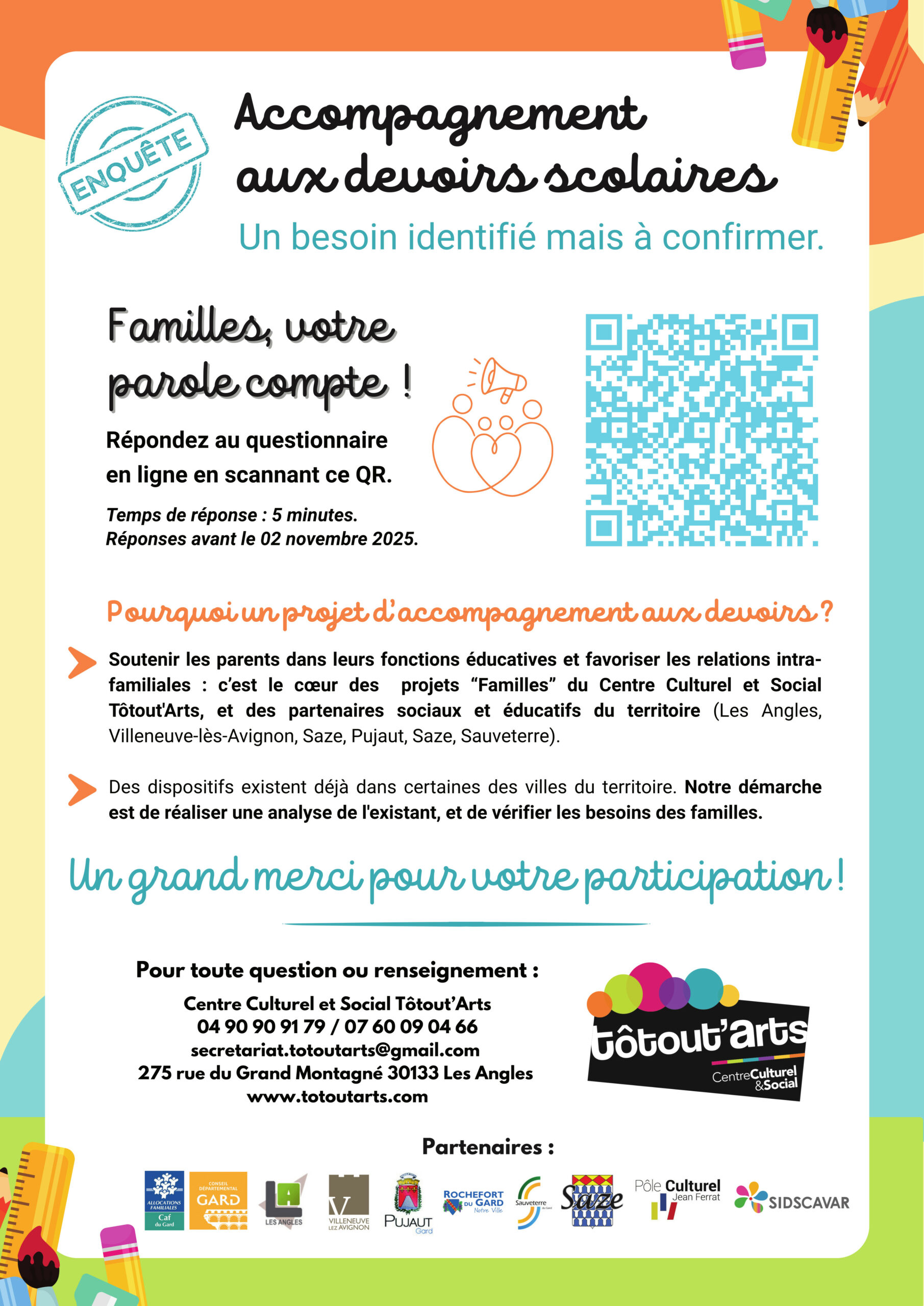 Tôtout’Artscontact@lesangles30.fr2025-10-22T15:24:24+02:00 Enquête : accompagnement aux devoirs scolaires Consulter toutes les actualités