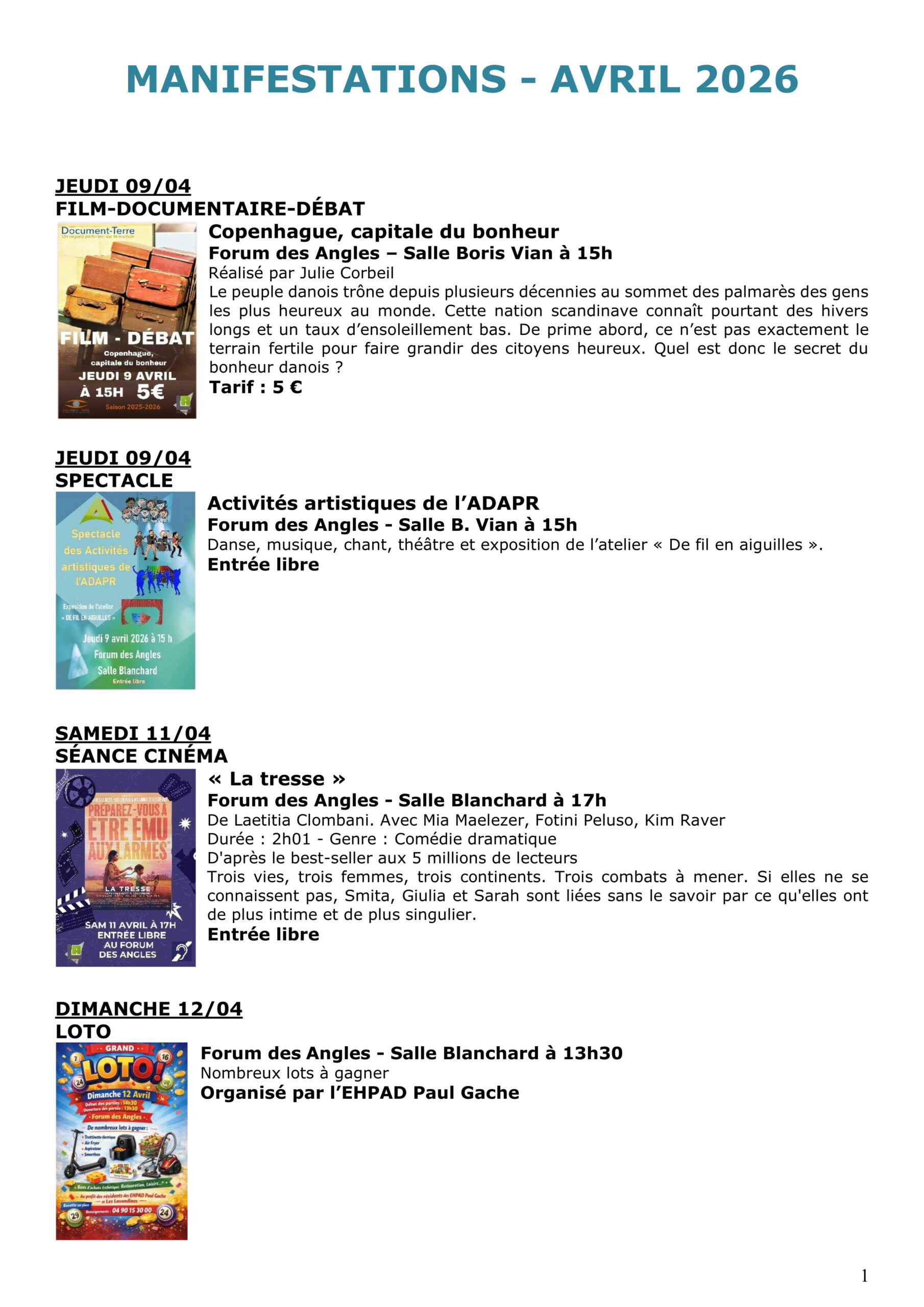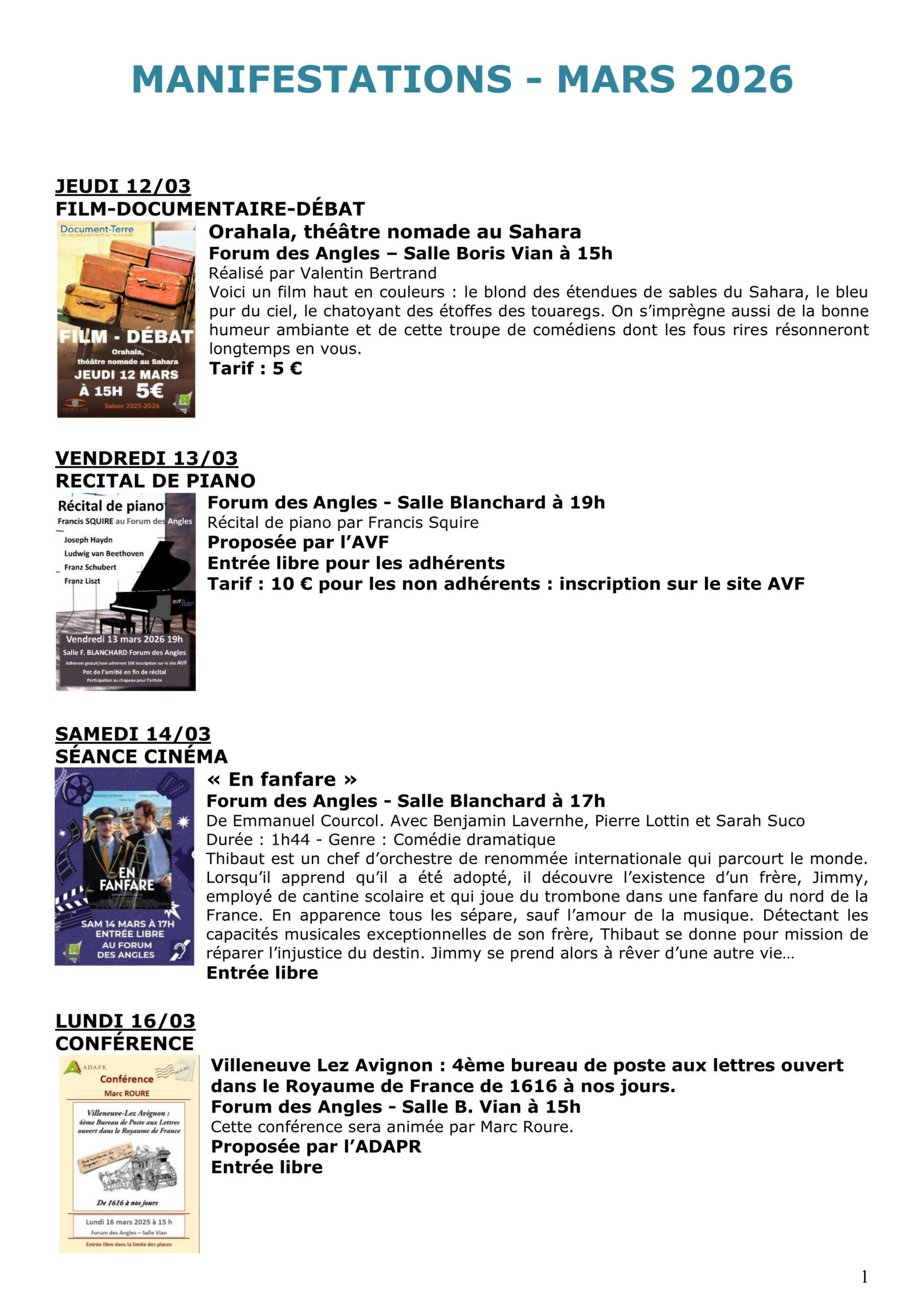 10 bd des Carrières 30133 LES ANGLES 04 90 25 68 70 forum@lesangles30.fr